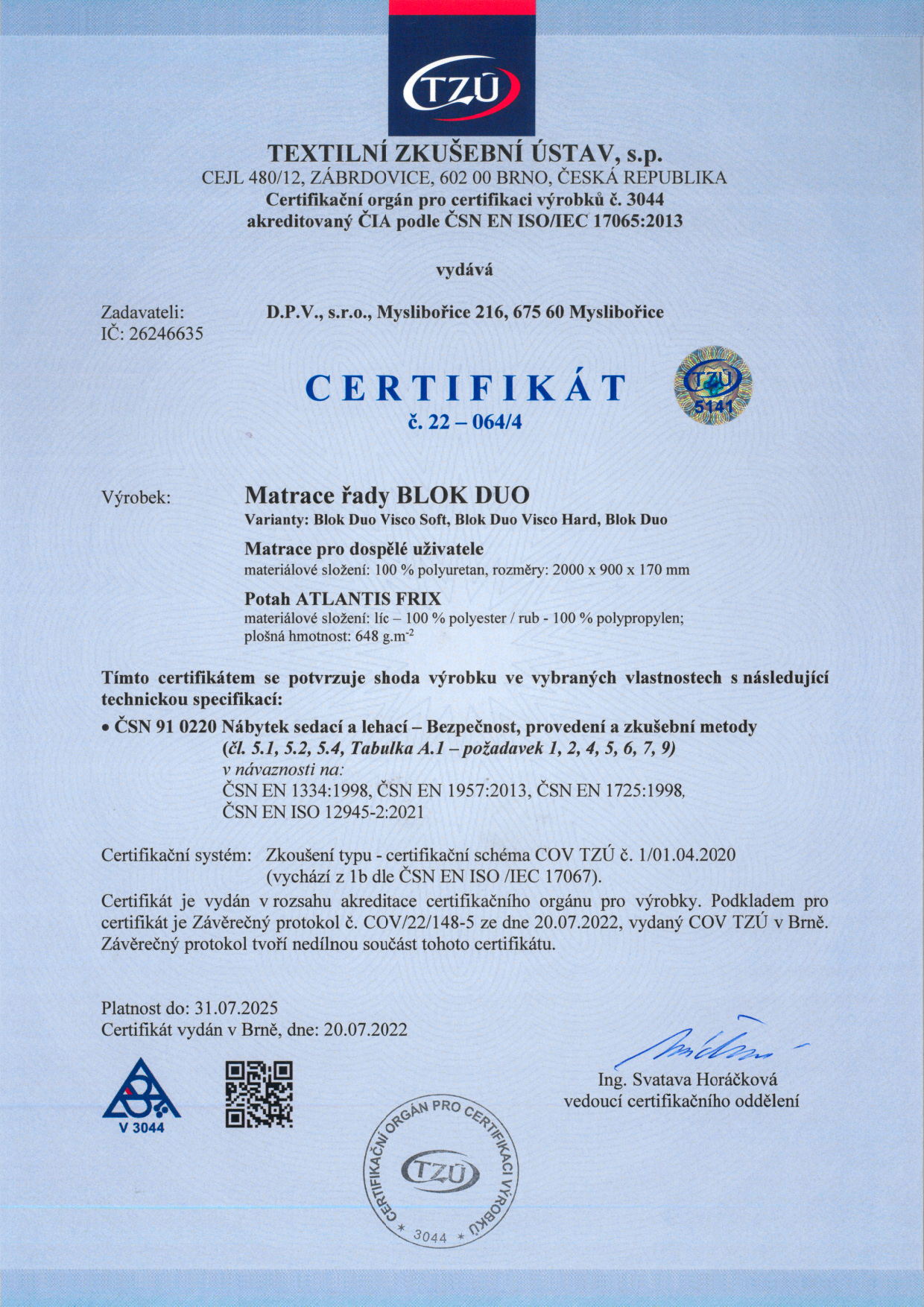 - SKÚŠOBŇA NÁBYTKU TZÚ Brno – Certifikát č. 22-064/4