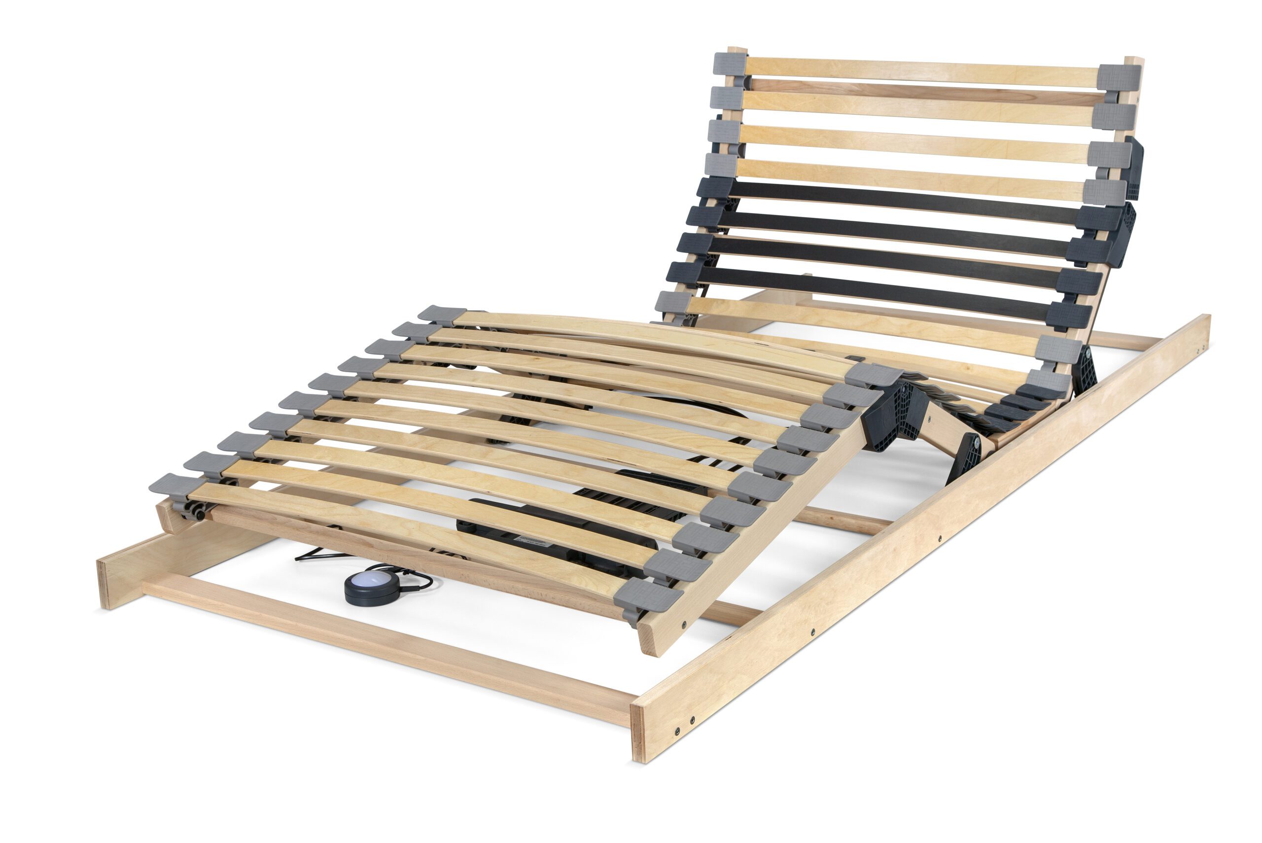 Predpäté bukové lamely uložené v kaučukových puzdrách nad bočnicou zvyšujú odolnosť a zaťaženie roštu. Vyvýšené pätky umožňujú pohyb lamiel po celej dĺžke a zaručujú maximálny komfort spánku. Unikátne ploché motory zaručujú veľmi tichý a plynulý chod pri polohovaní. Motorový rošt nemá žiadne prvky, ktoré by vyčnievali pod rám, a tým neobmedzovali úložný priestor. Polohovacie motorové rošty sú vhodné pre penové a latexové matrace.